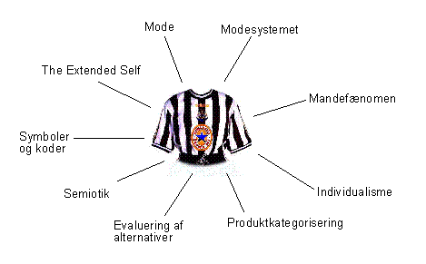 Klubtrøjerne indgår i et modesystem. Modesystemet består af "alle de personer og organisationer, der er involveret i at lave symbolske meninger og overfører disse meninger til kulturelle goder" (Solomon 1996, 560). Her er mode bredt defineret og omhandler således ikke kun tøj. De meninger, modesystemet indeholder, kan opfattes som koder (Davis 1985, 16). Disse koder er kontekstafhængige, og det gælder især for tøjmoden. Som Davis (1985, 17) skriver, afhænger de symbolske meninger af faktorer som tøjbærerens identitet og stedet, hvor trøjen bæres. De symboler, trøjen derfor står for (se også afsnit 2.3), kan således blive anderledes end de symboler, en rigtig fanbærers trøje, står for. Trøjens symbolik er tydeligt kontekstafhængig.